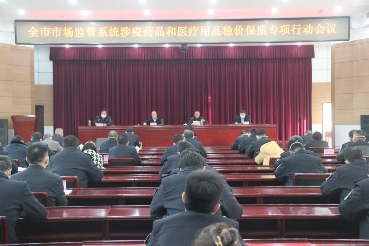 1月6日下午,市市场监管局召开全市系统涉疫药品和医疗用品稳价保质专项行动会议,传达贯彻总局、省局会议精神,安排部署我市市场监管系统涉疫药品和医疗用品稳价保质专项行动。市市场监管局党组副书记、副局长申保刚,党组成员、副局长杨跃峰,党组成员、药品安全总监高洪涛,党组成员、驻局纪检监察组组长段华珍出席会议并讲话。