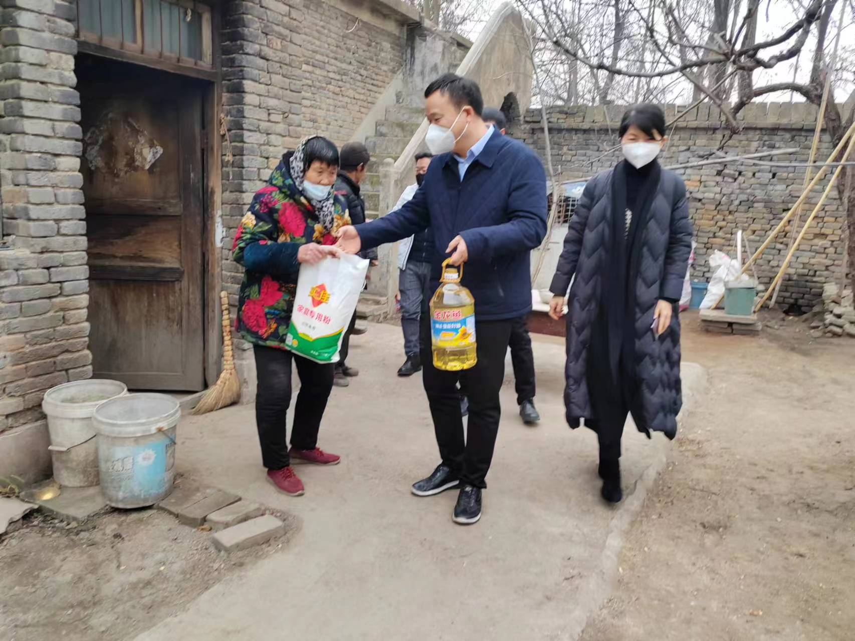 在襄城县山头店镇祝冯村,市局四级高级主办吴宏胜一行看望了在此驻村担任第一书记的朱世新同志,询问了第一书记工作、生活中存在的困难,转达了市局党组的问候和牵挂。在第一书记和村干部的带领下,市局四级高级主办吴宏胜一行对祝冯村困难党员、困难群众进行了走访慰问,并为他们带去了米、面、油等生活物品,给他们带去了浓浓的新春祝福,让驻在村党员群众切实感受到了市市场监管局党组织的温暖。