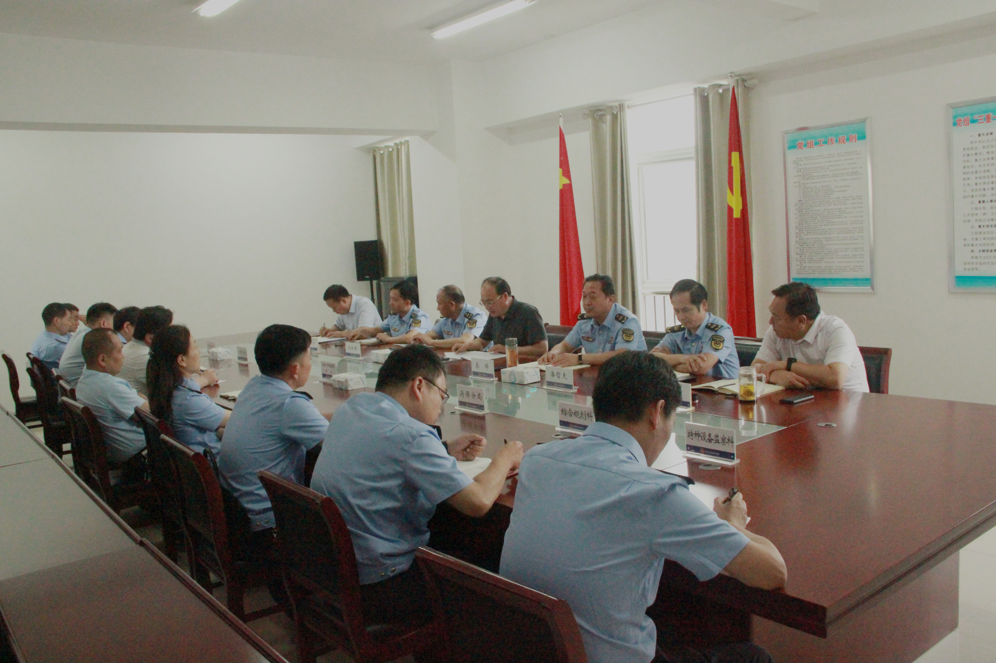 6月21日,市市场监督管理局召开专题会议,安排部署加强端午节期间市场监管和应急值守工作。市市场监督管理局党组副书记、副局长申保刚主持会议并讲话,市市场监督管理局党组成员出席会议。