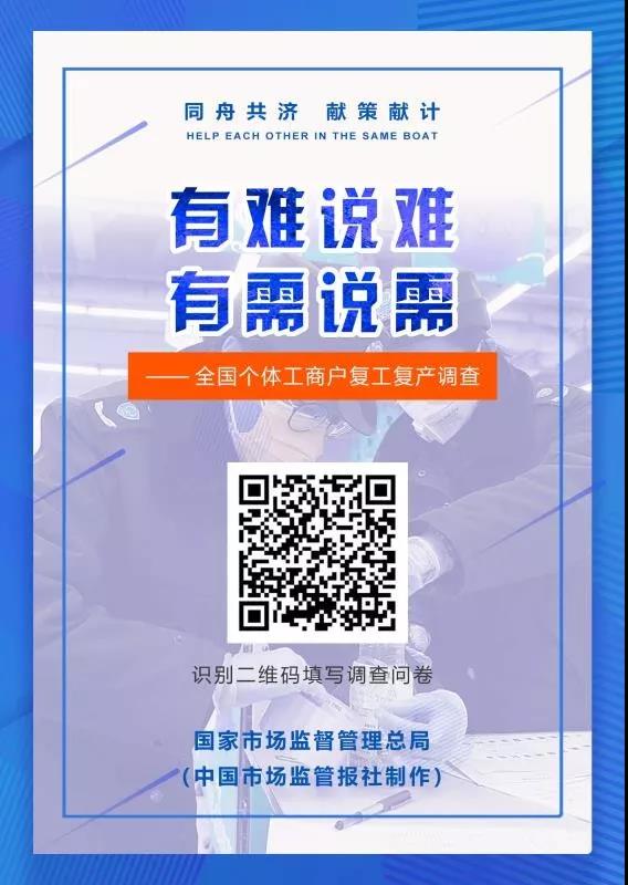 国务院应对新冠肺炎疫情联防联控机制日前通知,要求各地区各部门切实加强疫情科学防控、有序做好复工复产工作。为了解广大个体工商户复工复产的实际困难和需求,市场监管总局就全国个体工商户复工复产情况开展问卷调查。