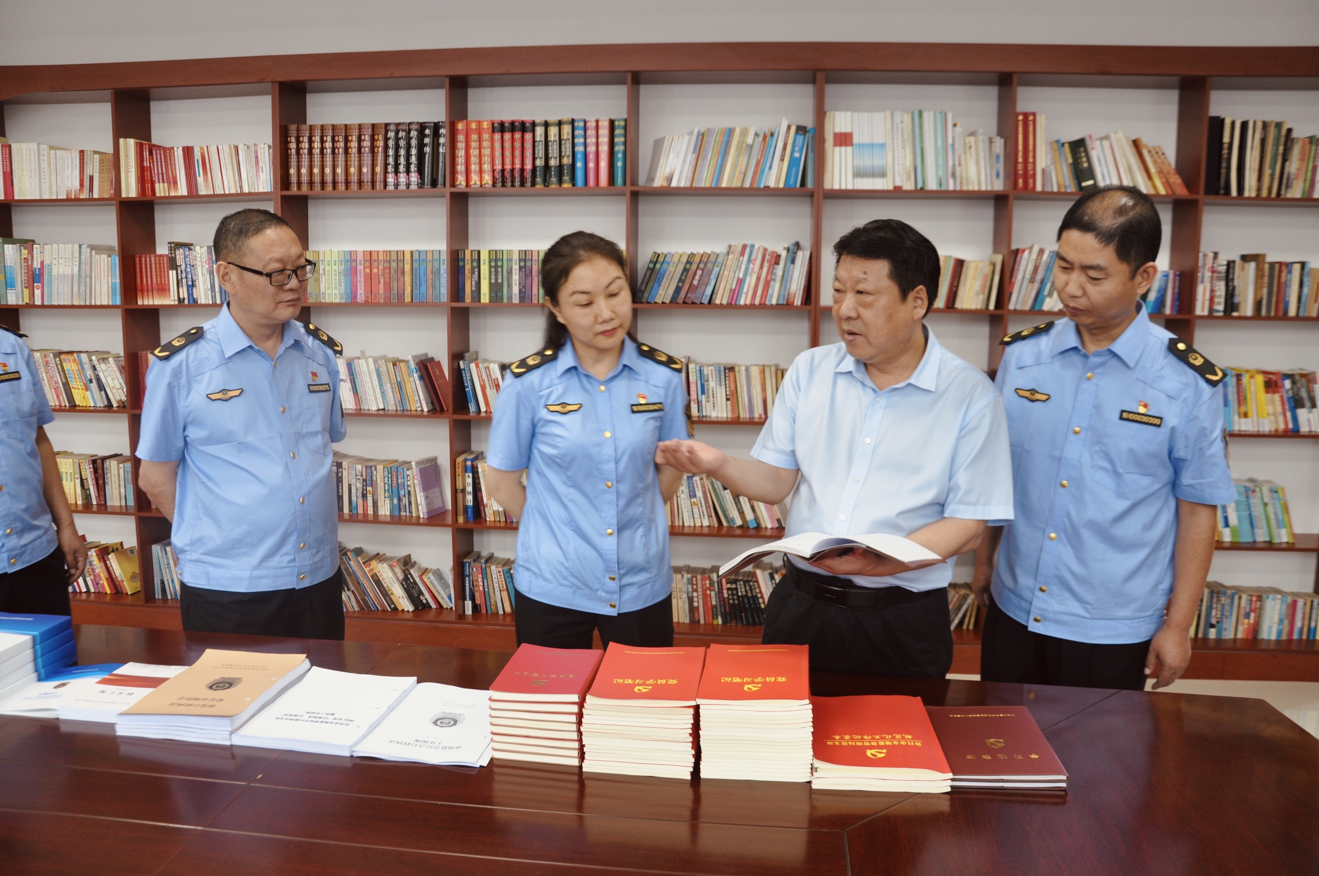 孙俊洲实地查看支队办公环境,查阅支队党建活动、制度汇编、年度工作集、执法事项指导目录、实务手册等资料,了解支队在行政执法、文明创建、机关党建、制度建设、廉洁自律等方面取得的经验成果,并听取市场监管综合行政执法工作专题汇报。