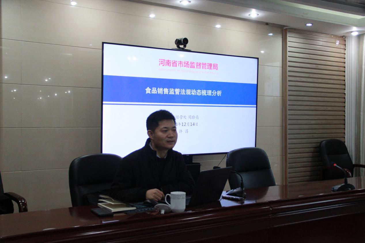 2023年12月14日,第一期“市场监管大讲堂”活动如期举办,河南省市场监督管理局食品经营安全监管处周晗亮副处长以《食品销售监管法规动态梳理分析》为题,为a片动画 市场监管人上了一堂精彩的食品安全监管课。市局党组副书记、副局长申保刚同志主持活动,市局党组成员、机关相关科室及各市区各分局、各县(市、区)分局局长、副局长、股长、市场监管所所长70余人参加了本次大讲堂活动。